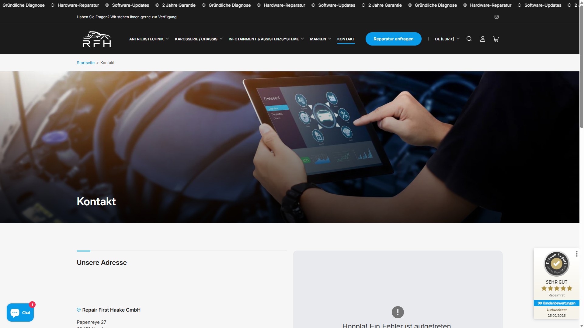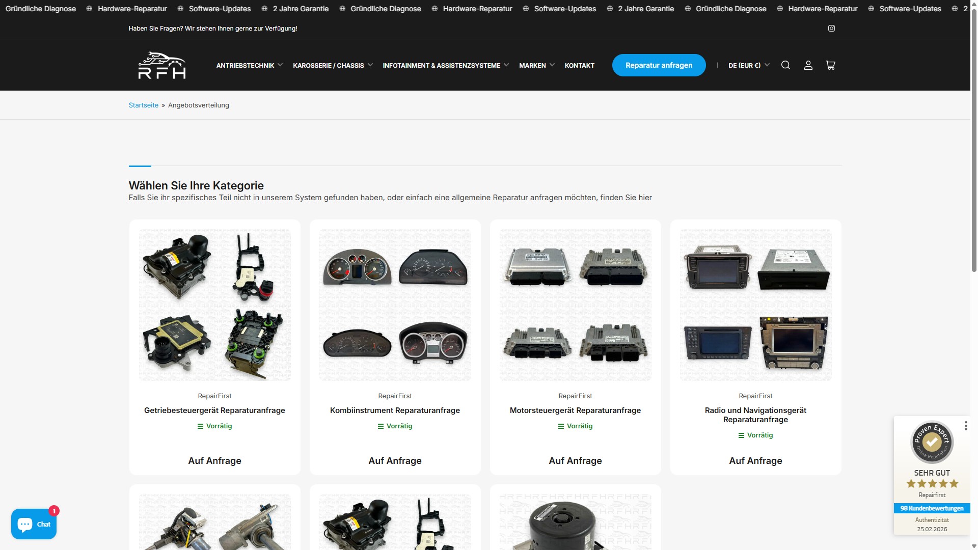 RepairFirst ist spezialisiert auf Airbag- und Gurtstrafferreparatur für B2B (Werkstätten) und B2C (Endkunden). Das Problem: Anfragen, Projektmanagement und Buchhaltung liefen in Silos. Manuelle Angebotserstellung dauerte Stunden. Die alte Website bot lediglich ein Anfrageformular zum Download – keine direkte Buchung, keine Suchfunktion, keine Möglichkeit für Kunden, den passenden Service online zu finden.