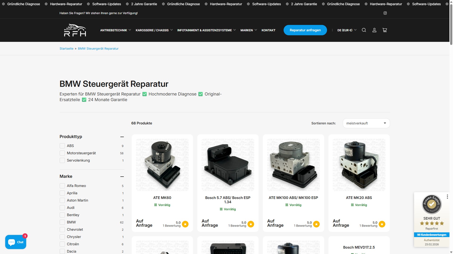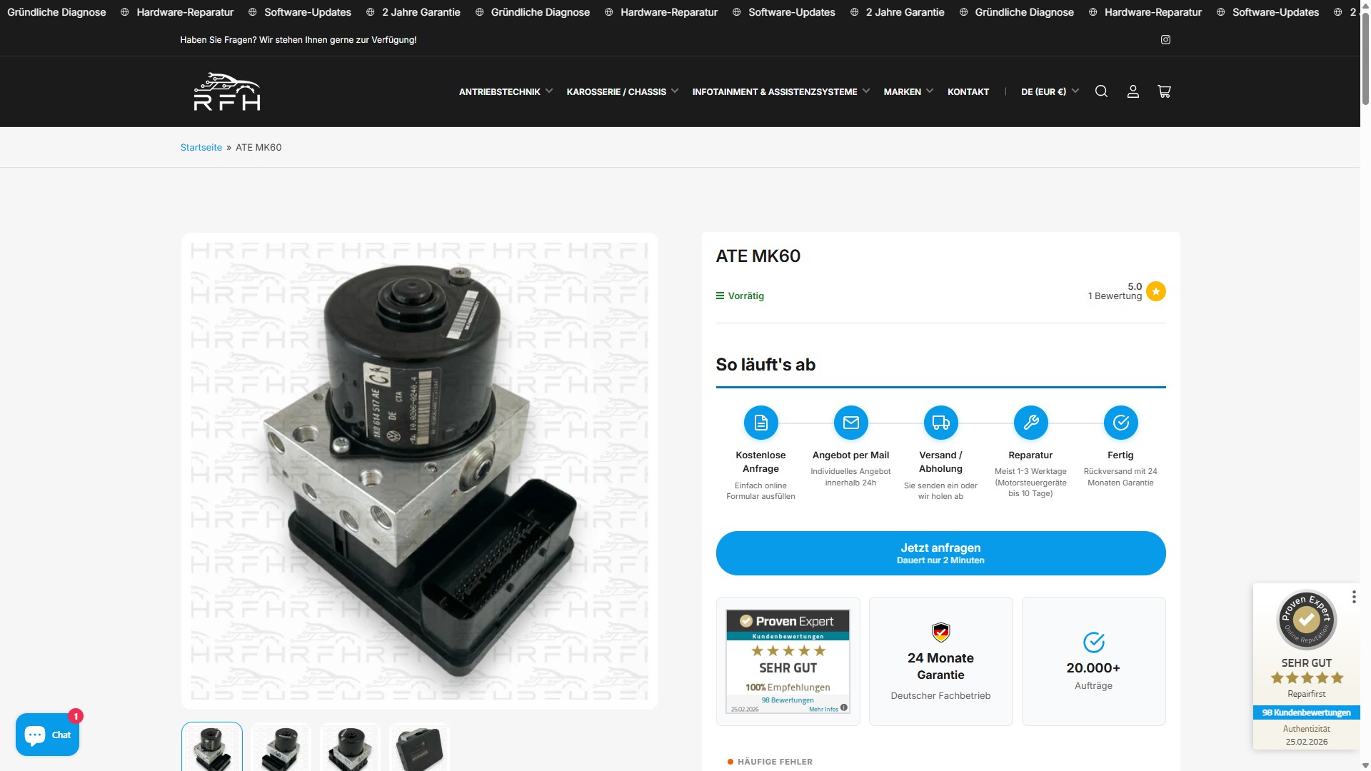 Der Shopify-Shop mit intelligenter Fahrzeugsuche macht es Kunden einfach, das richtige Ersatzteil oder den richtigen Reparaturservice zu finden. Die Conversion-Rate ist seit dem Relaunch massiv gestiegen.
